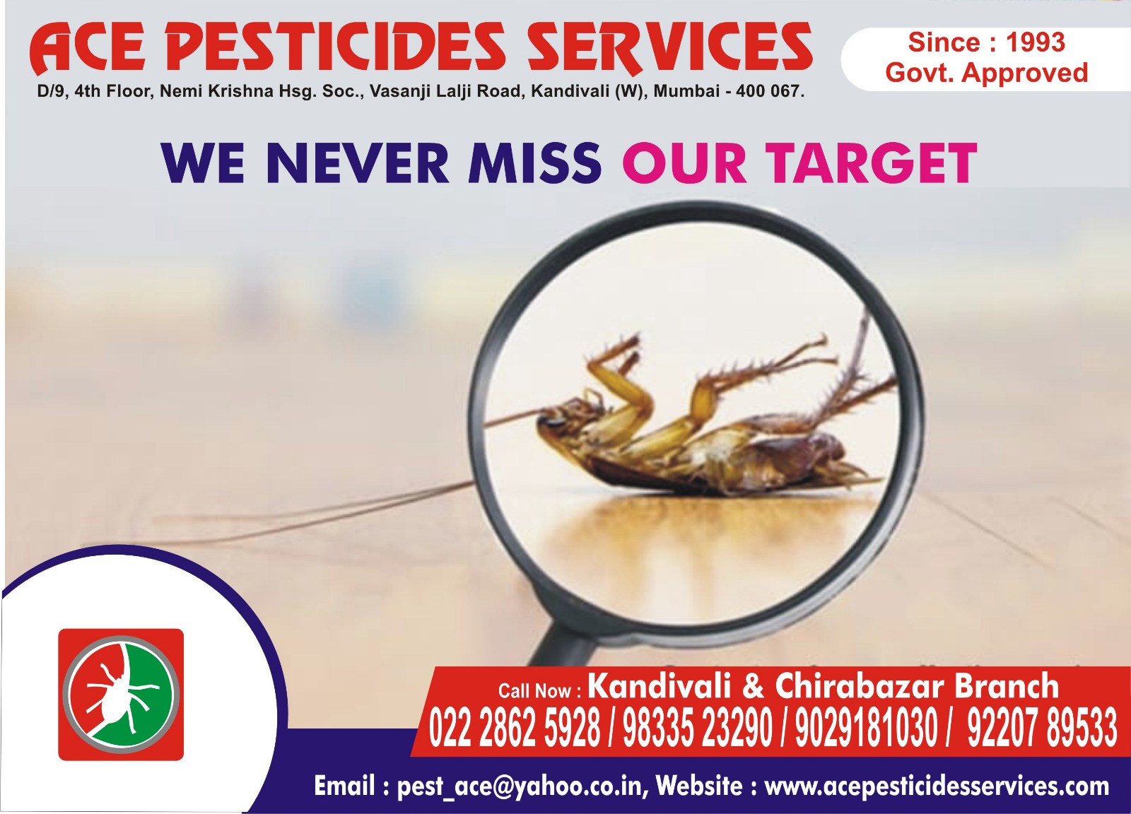 ACE PESTICIDES SERVICES is one of the leading and best pest control Companies in Mumbai.They have over 30 year of experience in the industry. Pest Control Services in Kandivali-West, Mumbai -9220789533. Pest Control Kandivali - 9220789533. 9220789533 Pest Control in Kandivali-West, Mumbai. NO. 1 PEST CONTROL SERVICES IN KANDIVALI-WEST - 9220789533. 9220789533 TOP RESIDENTIAL PEST CONTROL SERVICES IN KANDIVALI MUMBAI. PEST CONTROL SERVICES KANDIVALI-WEST, MUMBAI.9220789533 TOP PEST CONTROL SERVICES IN KANDIVALI-WEST, MUMBAI- 9220789533. 9220789533 TERMITE PEST CONTROL SERVICES IN KANDIVALI-WEST, MUMBAI. RESIDENTIAL PEST CONROL KANDIVALI-WEST - 9220789533. Pest Control in Charkop, Kandivali-west, Mumbai. # 1 Pest Control Services in Kandivali-west, Mumbai - 9220789533. 9220789533 pest Control services in Mahavir nagar, Kanidvali-west, mumbai . COCKROACHES PEST CONTROL KANDIVALI-WEST, MUMBAI - 9220789533 BED BUGS PEST CONTROL MUMBAI. - 9220789533 BED BUGS PEST CONTROL TREATMENTS, MUMBAI- 9220789533 PEST BUGS PEST CONTROL SERVICES IN KANDIVALI-WEST, MUMBAI. - 9220789533 BED BUGS PEST CONTROL NEAR ME - 922079533 TOP BED BUGS PEST CONTROL IN KANDIVALI-WEST, MUMBAI. - 922079533 9220795330 BED BUGS TREATMENTS KANDIVALI-WEST, MUMBHAI. BED BUGS PEST CONTROL COMPANIES IN KANDIVALI-WEST, MUMBAI. - 922079533 PEST CONTROL KANDIVALI-EAST, MUMBAI. Pest Control Services in Kandivali-East, mumbai. - 9220789533. pest control Thakur village , Kandivali-East, Mumbai. - 9220789533. Pest Control Thakur complex, Kandivali-East, mumbai - 9220789533. pest Control Lokhandwala Complex, Kandivali-East, Mumbai - 9220789533 TOP PEST CONTROL SERVICES IN KANDIVALI-EAST, MUMBAI- 9220789533. Pest Control in akurli road, Kandivali-East, mumbai. BED BUGS PEST CONTROL KANDIVALI-EAST, MUMBAI. HERBAL PEST CONTROL KANDIVALI-WEST, GENERAL Pest Control Services in KANDIVALI-EAST, mumbai. PEST CONTROL IN KANDIVALI-EAST, MUMBAI. Pest Control malad , Pest Control Services in Malad-west, Mumbai. Pest Control Services in Marve Road, Malad-west, Mumbai - 9220789533. Pest Control in Malad-East, Mumbai. PEST CONTROL IN CHIIKUWADI, BORIVALI-WEST, MUMBAI. PEST CONTROL SERVICES IN SATYA NAGAR, BORIVALI-WEST, MUMBAI. PEST CONTROL IN SHIMPOLI ROAD, BORIVALI-WEST, MUMBAI. PEST CONTROL SERVIVCES IN YOGI NAGAR, BORIVALI-WEST, MUMBAI - 92207989533. PEST CONTROL L.T.ROAD, BORIVALI-WEST, MUMBAI - 9220789533. PEST CONTROL BORIVALI, MUMBAI - 9220789533. PEST CONTROL SERVICES IN HARIDAS NAGAR, BORIVALI-WEST, MUMBAI. PEST CONTROL IN SHANTI ASHRAM, BORIVALI-WEST, MUMBAI. Pest Control Services in Borivali-west, Mumbai. PEST CONTROL IN CHANDAVARKAR ROAD, CHAMUNDA CIRCLE, BORIVALI-WEST, MUMBAI. PEST CONTROL SERVICES IN SODAWALA LANE, BORIVALI-WEST, MUMBAI. PEST CONTROL IN LIC COLONY, BORIVALI-WEST, MUMBAI. Pest Control Borivali-East, mumbai - 9220789533. Pest Control I.C.COLONY, Borivali-west, mumbai. - 9220789533. PEST CONTROL SERVICES IN SAIBABA NAGAR, BORIVALI-WEST, MUMBAI. Pest Control Services in Gorai, Borivali-west, Mumbai - 9220789533. TOP PEST CONTROL SERVICES IN BORIVALI-EAST, MUMBAI. TOP RESIDENTIAL PEST CONTROL SERVICES IN BORIVALI-EAST, MUMBAI. TERMITE PEST CONTROL SERVICES IN BORIVALI-EAST, MUMBAI. BEST PEST CONTROL SERVICES IN BORIVALI-EAST, MUBAI. PEST CONTROL BORIVALI-EAST, MUMBAI. PEST CONTROL SERVICES IN CARTER ROAD, BORIVALI-EAST, MUMBAI. TOP PEST CONTROL SERVICES IN CARTER ROAD, BORIVALI-EAST, MUMBAI. pest Control in Doulat Nagar, Borivali-East, mumbai. - 9220789533. PEST CONTROL IN RATAN NAGAR, BORIVALI-EAST, MUMBAI. Pest Control Dahisar - 9220789533. Pest Control Services In anand Nagar, Dahisar-East, Mumbai. Pest Control Services in Dahisar-East, Mumbai - 922078933. Pest Control Mumbai - Pest Control Services in Mumbai - 9220789533. Pest control jawahar nagar, Goregaon-west, Mumbai. Pest Control in Baungur nagar, Goregaon-west, mumbai. Pest Control in Dindoshi bus depo, Goregaon-East, mumbai. TOP 10 Pest Control Companies In Mumbai. BED BUGS PEST CONTROL TERMITE PEST CONTROL SERVICES IN BORIVALI-EAST, MUMBAI. TERMITE PEST CONTROL SERVICES, MUMBAI. - 9220789533 Cockroaches Pest Control Services in mumbai. Herbal pest control services, mumbai. - 9220789533 pest control walkeshwar, mumbai. - 9220789533 General Pest Control Services in mumbai. pest Control Gel Treatments Services in mumbai. pest control services near me - 9220789533. pest control services, mumbai. pest Control Services in marine lines, mumbai.- Cockroaches Control Services in mumbai. COCKROACHES PEST CONTROL KANDIVALI-WEST, MUMBAI. COCKROACH PEST CONTROL TOP COCKROACH PEST CONTROL SERVICES IN KANDIVALI-WEST, MUMBAI. COCROACHES PEST CONTROL IN KANDIVALI-EAST, MUMBAI. pest control services near south Mumbai. - 9220789533. pest control services lower parel, mumbai. NO. 1 PEST CONTROL SERVICES IN MARINE LINES, MUMBAI.